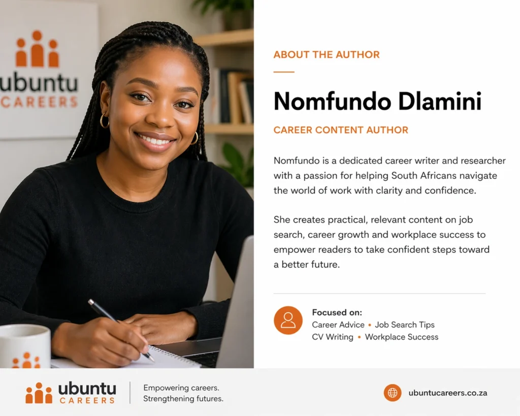 Nomfundo Dlamini is a dedicated career content author at UbuntuCareers.co.za, passionate about empowering South Africans with practical, easy-to-understand career guidance. She specializes in creating insightful content on job opportunities, learnerships, CV writing, and career growth, helping young people navigate the world of work with confidence. Her writing combines thorough research with a relatable tone, making complex career information simple and accessible to all readers.